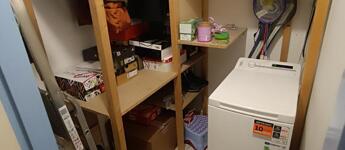 A cserélt bejárati ajtó előtt, egy külön 6 nm-es , ráccsal leválasztott teret is találunk, ahol bringát, rollert, vagy más ritkán használt eszközöket is bátran lehet tárolni, amivel nem szeretnénk a lakás hasznos területét elvenni.