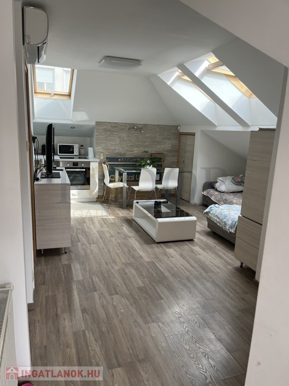 Nappali klímával, félszoba, valamint zuhanyzós fürdőszoba található.