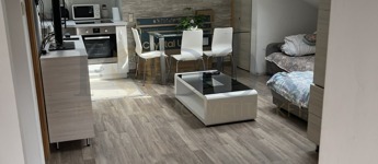 Az udvarról külön bejárattal megközelíthető, önálló, klimatizált lakrész egy szobával és zuhanyzós fürdővel.