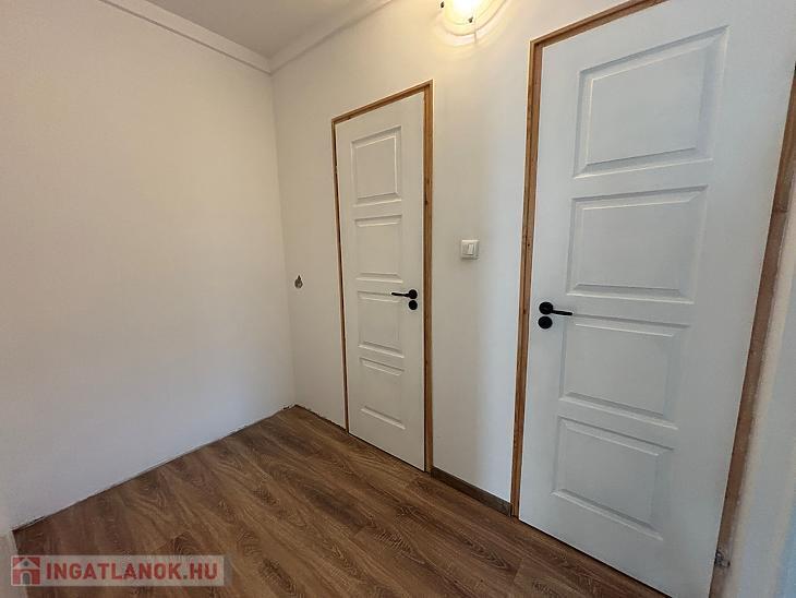 Az ingatlan jó állapotú, a villany-vezetékeket áthúzták alumíniumról rézre, új biztosító dobozt szereltek fel. A nyílászárók, karbantartott, fa típusú thermo üvegesek, a belső ajtókat kicserélték, a bejárati ajtó több ponton záródó, biztonsági. A szobák csiszolt és színezett fa parkettások, a konyha, hall és az előtér pedig laminált parkettás, a többi helyiség járólapos. A fürdőszoba és a wc új burkolatot és szanitereket kapott, a radiátorokat kicserélték. A régi konyhabútort kiszedték, a kiállások megvannak, így az új bútor kiválasztása, beszerelése az új tulajdonosra várnak.