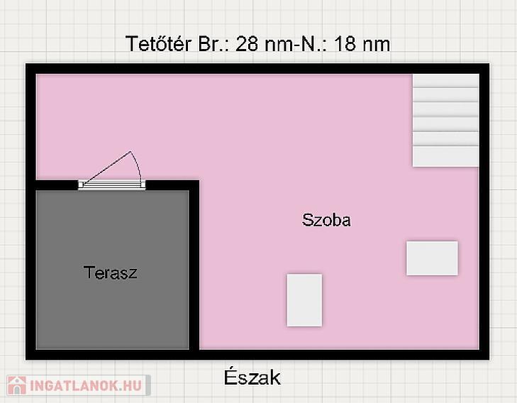 A tetőtérből egy kb. 5 nm-es teraszkapcsolat nyílik.
