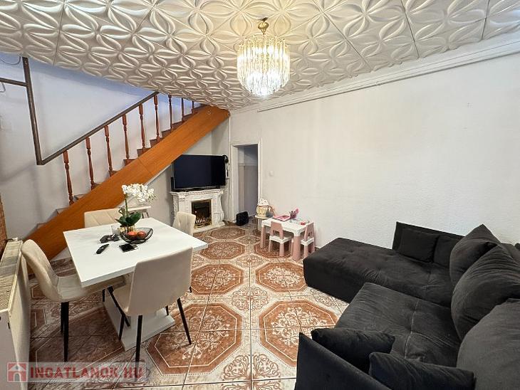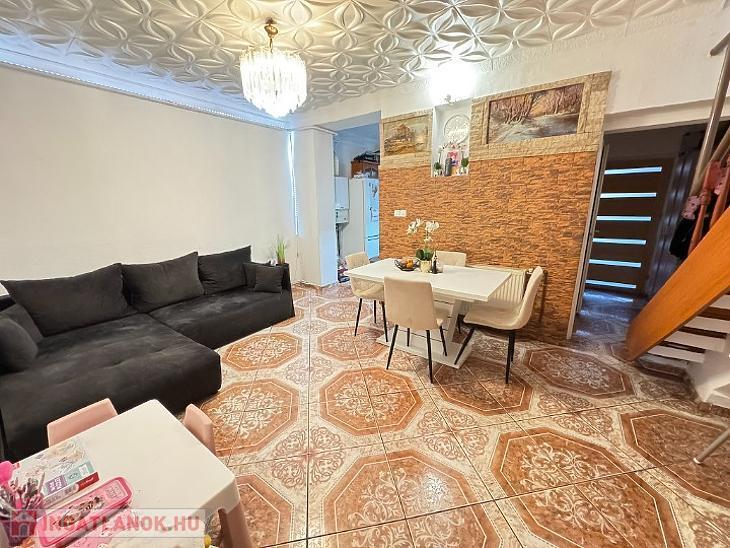 Megyeren, a Béke tér közelében, családiházas, kertvárosi övezetben, eladásra kínálunk egy belső kétszintes, bruttó: 120 nm-es, nettó: 110 nm-es, amerikai konyhás nappali+3 szoba+hallos elosztású, jó állapotú, duplakomfortos, szigetelt ikerházfelet.