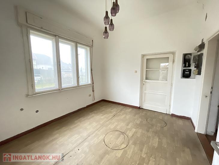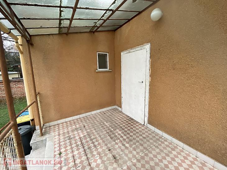 Nettó 77,3nm-es, 2szoba, előszoba, közlekedő, konyha, fürdőszoba + wc helyiségekből áll, illetve az előszobából nyílik egy 8,92nm-es TERASZ is. A ház alatt található egy kb. 10nm-es pince, ami a kamrából közelíthető meg, a padlásfeljáró is itt található. Tetőtere beépíthető, mivel beton födémes, a tető váza pedig vas szerkezetű, zsindely borítással.