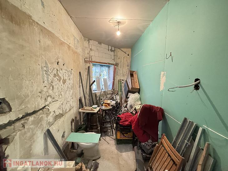 Újpesten, az Aschner Lipót tér közelében, zöldfás mellékutcában, eladásra kínálunk egy közvetlen utcafrontról nyíló, jelenleg teljeskörű felújításon áteső, 38 nm-es, amerikai konyhás nappali+1 szobás elrendezésű házrészt, jelen befejezetlen állapotban.