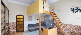 A lakás belmagasságának köszönhetően már kialakításra került galéria, illetve a tetőtér beépítése is elkezdődött (szigetelés + gipszkarton).
