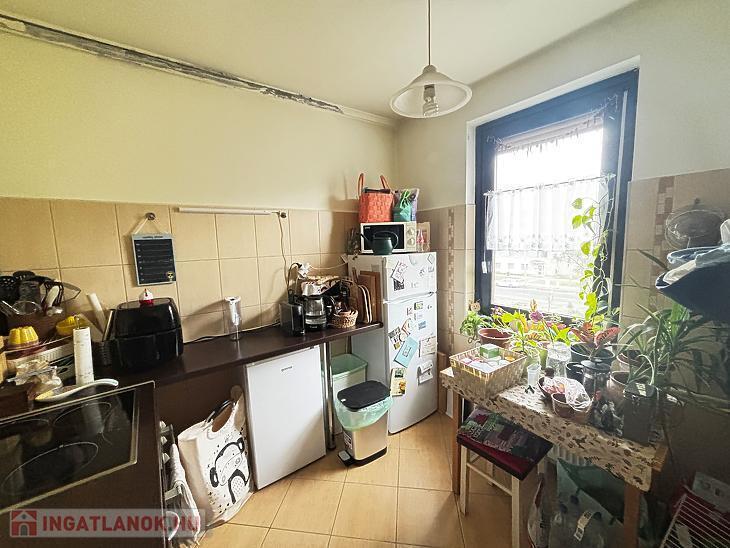 Az ingatlan közepes állapotú, a szoba laminált parkettás, a többi helyiség járólapos, a nyílászárók fa típusú thermo üvegesek, redőnyösek. A konyhabútort és a radiátorokat kicserélték, a fürdőszoba új kádat és burkolatot kapott. Amerikai-konyhás nappali kialakításával, könnyedén nyerhető még egy félszoba a konyha helyén. A beépített bútorzat és a mosogatógép a vételár részét képezi. A lakáshoz tartozik egy 2nm-es saját, és egy közös 10nm-es tároló is.