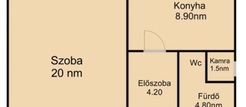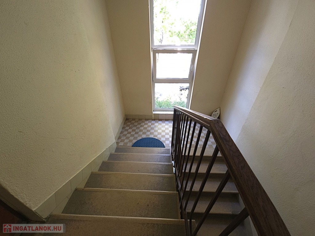 Ahogy belépünk a lakásba, egy tágas előszobába érkezünk, innen balra található a világos szoba, amely dupla rétegű fa nyílászárókkal, redőnnyel felszerelt, és egy hangulatos franciaerkély is kapcsolódik hozzá. Szemben helyezkedik el a fürdőszoba WC-vel , zuhanyzóval, míg jobbra fordulva jutunk el a konyhába, ahol szintén fa nyílászáró található. A konyhából nyílik a praktikus kamra. A lakáshoz tartozik még egy 6 nm-es saját pince, valamint egy 1 autó számára alkalmas garázs is.