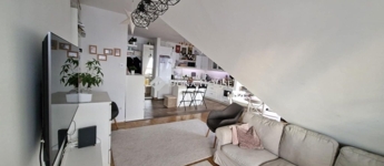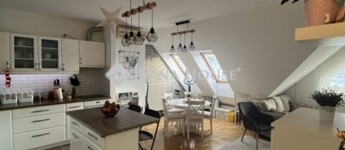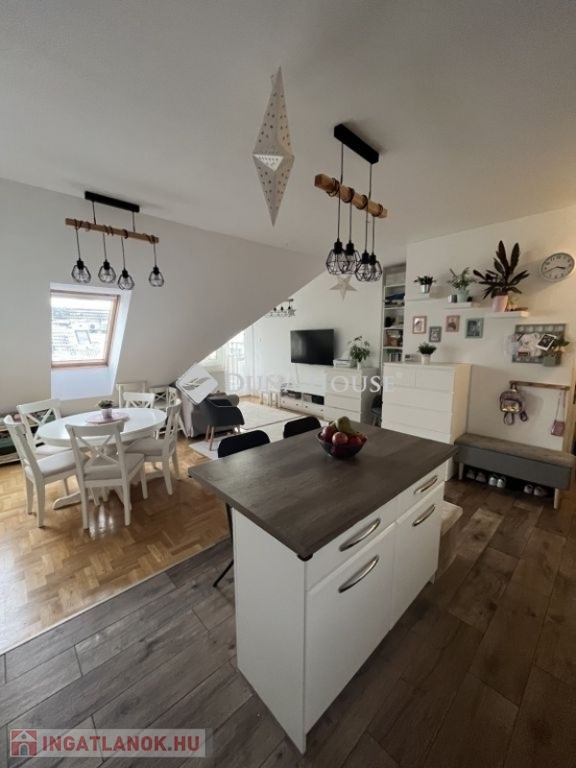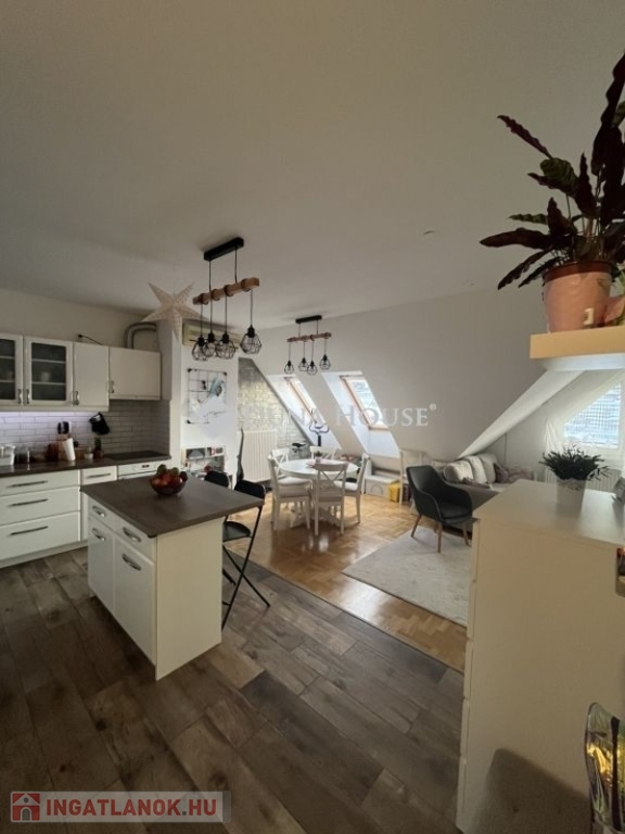 Tetőtéri elhelyezkedés egész nap világos, napfényes terek, a kialakítás miatt a térérzet a tulajdoni lapon szereplő méretnél nagyobb