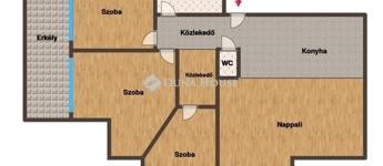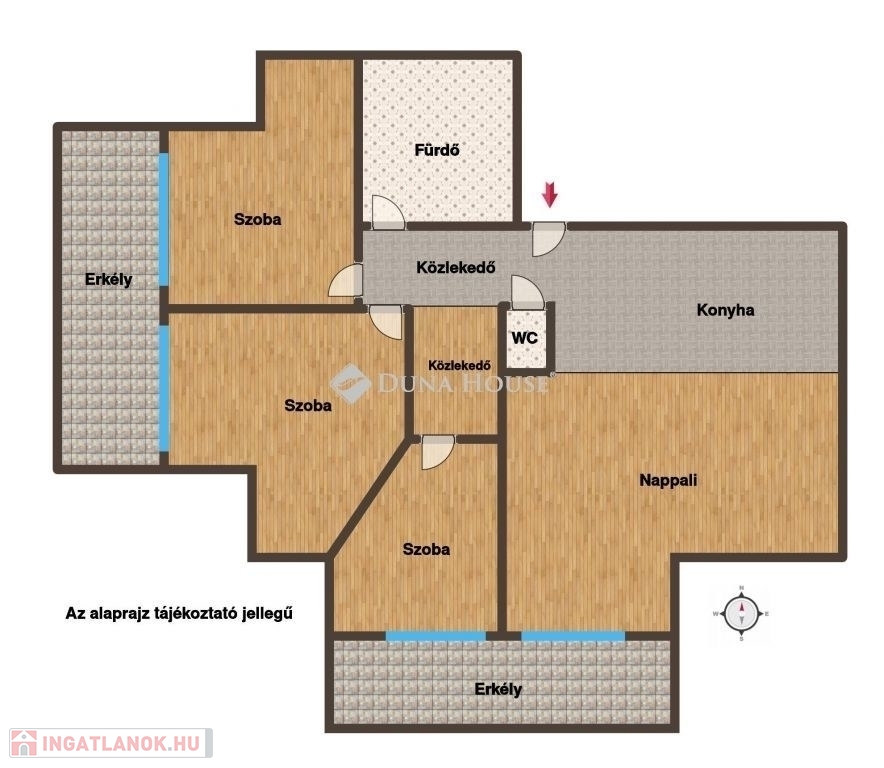 3 külön nyíló hálószoba jól bútorozható, praktikus elrendezés