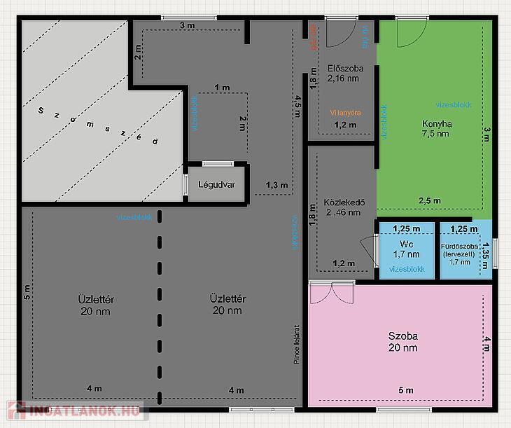 Összesen 89 nm ( 54 nm üzlet + 35 nm lakrész)