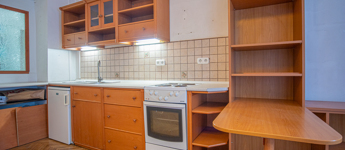 A lakás részben bútorozott: étkezőasztal + 4 szék, kanapé, fotel, szekrény. A konyhában hűtő található.