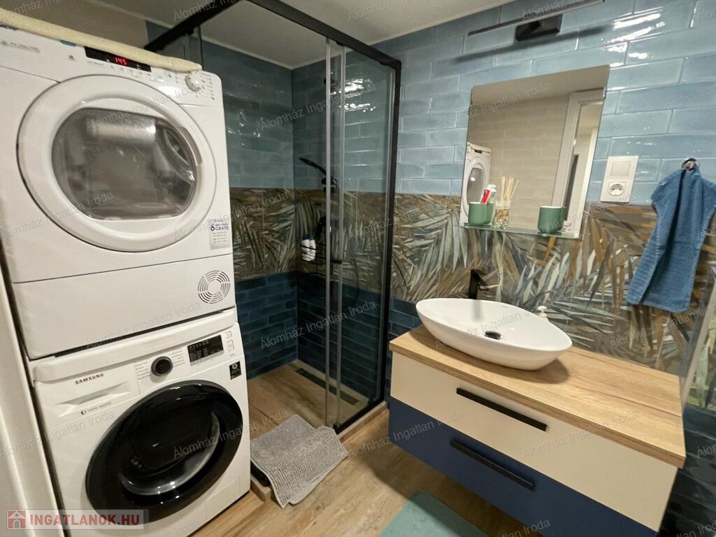 A lakás bútorozott és gépesített, a földszinten található konyha teljes mértékben felszerelt. A kellemes hőmérsékletről klíma, valamint elektromos fűtés gondoskodik.