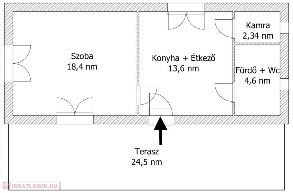 A telken két ingatlan található, nettó 39 nm-es ház, hozzá tartozó 25 nm-es terasszal illetve egy nyárikonyha 18 nm, egy kinti Wc-vel.