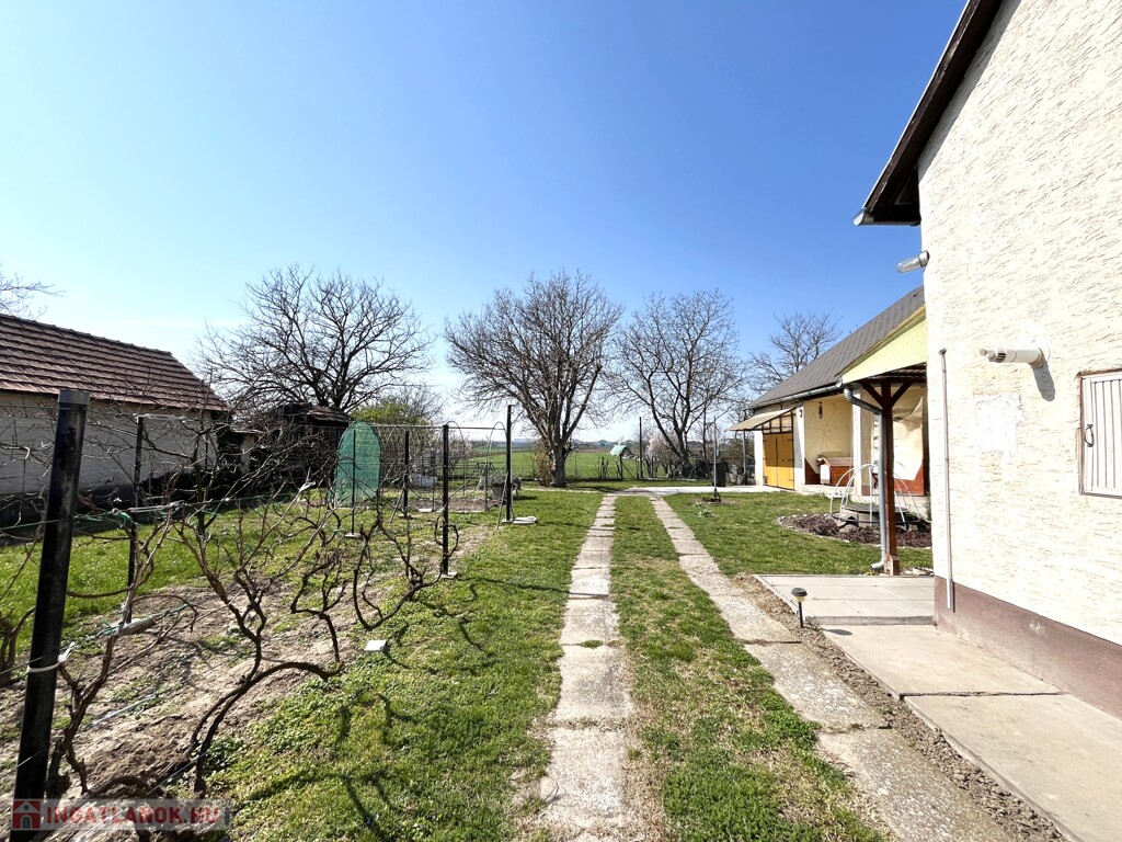 A telek 5.465 m2, gazdálkodásra is alkalmas, a rajta álló ház 110 m2 hasznos alapterületű. A házzal egybeépítve van egy 35 m2-es garázs, és mellette több tároló.