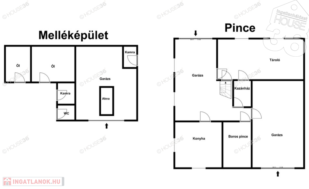 Egész épület alatt szuterén, garázzsal, konyhával, tárolókkal