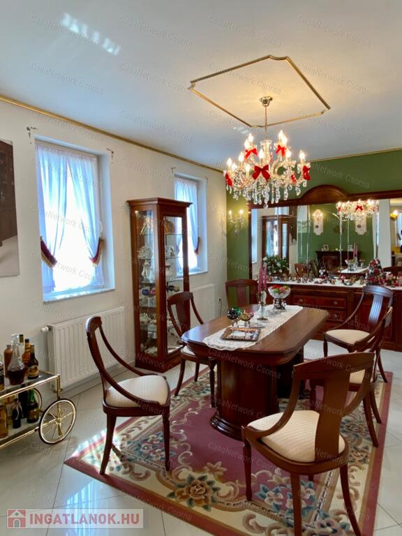 A kastély 3 csillagos amerikai stílusú kastélyszállóként üzemelt, melyhez 5 szoba tartozik, 20 fő elszállásolására van lehetőség. A szobák az udvarból nyílnak, így a saját lakóterülettől függetlenek. Ezek a szobák üzemelhetnek újra szállóként, vagy: tárolóként, hobbiszobaként, vendégszobaként. Mindegyik saját fürdővel rendelkezik. Felszereltsége: tv, hűtő, ventilátor, asztal, főzőlap.A lakótér szintén amerikai stílusban készült el, 3 hálószoba fő hálóval mindegyikéhez tartozik fürdőszoba,plafon ventilátor, többségében klíma. Továbbá amerikai stílusjegyek szintén felfedezhetőek az amerikai dupla konyhában, mind a bútorzat, mind a gépesítés duplán lett beszerelve. A kastélyban tovább sétálva találhatunk olvasó szobát, zene szobát ahol zongora található meg (1870-es évekből származó 100%fa zongora), gardróbot, nem maradhat el a társalgó, szalon sem. Továbbá felhívnám figyelmét az igényes, minőségi anyaghasználatra, amitől ez az ingatlan igazán értékes lesz: -réz kilincsek, márvány párkányok belül, réz kívül, kristály üveg ajtók, selyem függönyök, 24k aranyozott festések, oszlopok (14db) festése (művészek által festett, motívumok szintén), festmények, motívumok, alumínium ereszek, kettős hódfarkú kastélycserép, réz féltorony, alumínium zsalugáterek, mahagóni laminált padló, a korhű bútorok és csillárok Spanyolországból származnak, mindenből a legmodernebb a gépesítést figyelembe véve. Ezeket tekintve bizonyosodik be, hogy az ingatlan hosszútávra épült, energiát és pénzt nem spórolva.Fűtésrendszere gázkazánnal és elektromos fűtéssel megoldott, két szárnyban külön-külön megtalálható a kazánház. A kastély erős alapokra épült, pénzt nem spórolva szakszerűen emelték meg a telek magasságát 1,8m-el. Az ingatlan tovább bővíthető,, megemelhető egy szinttel. Így az alapterület megduplázható, jelentősen pénztárca kímélőbben. Ipari áram a garázsba bevezetésre került. 2 fúrt kút ad vízellátást az antikolt szökőkutaknak, amelyek idényszerűen biztosítják a kellemes hangulatot az udvarban. A monolit vasbetonból födém minden statikai követelményt kielégít. A 2 külön szárny tűzzáró ajtókkal lett elválasztva egymástól a nagyobb biztonság érdekében. 8cm szigetelést és nemesvakolatot kapott a ház kívülről. 3,5 férőhelyes garázsban több autó is kényelmesen elfér. A kastély mellet található közművesített 720m2-es építési telek szintén eladó a kastéllyal együtt +30 millió ft-ért. Amennyiben felkeltette figyelmét az ingatlan, vagy kérdése