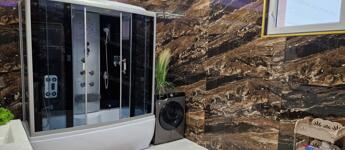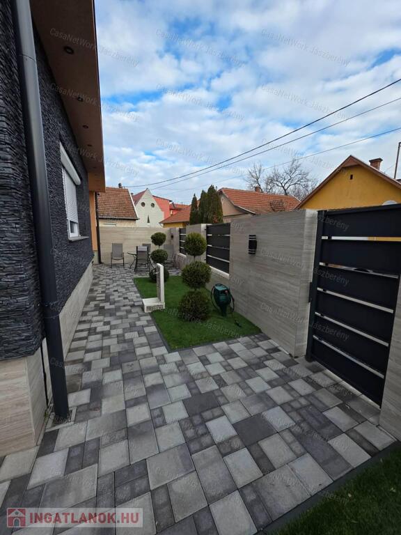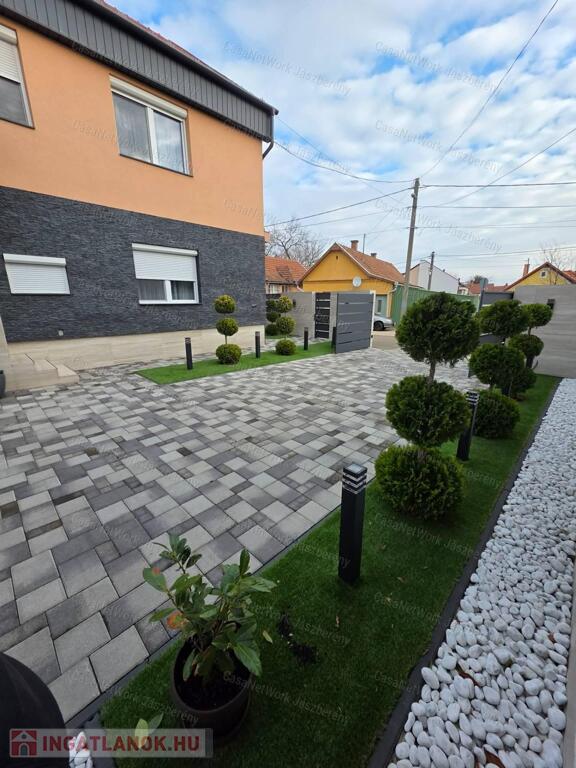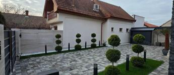 Az ingatlan valódi különlegessége a 60 nm-es, igényesen kialakított külső wellness részleg, ahol jacuzzi, prémium burkolatok és Olaszországból érkezett minőségi járólapok teremtenek exkluzív pihenőzónát. A kert mesébe illő, gondosan karbantartott: gömb tuják, 30 nm műfű, letisztult, harmonikus összkép jellemzi.