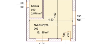 A kertben még egy majdnem 20 nm nagyságú nyári konyha is található, amelyben a víz, áram és a gáz is bevezetésre került.