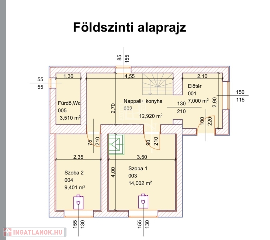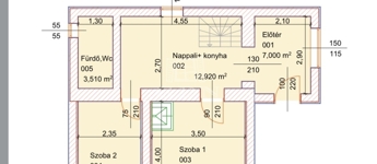 A ház a földszinten 2 szobából, egy előtérből, fürdőszobából, és konyhából áll.