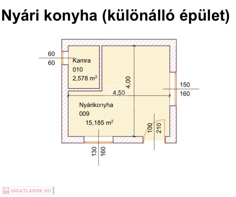 A háznak az egyik oldalán további lehetőség van még egy szoba kialakítására, mivel jelenleg szintén téglából hozzá van építve egy körülbelül 15 nm nagyságú tároló (normál belmagassággal).