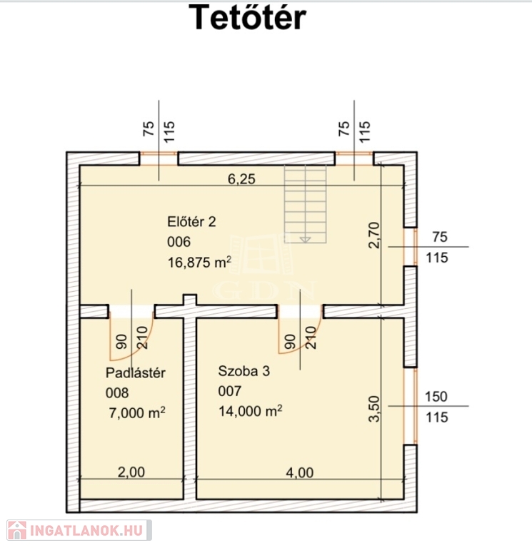 A beéíptett tetőtér 15 éve került kialakításra, a korábbi padlástérből, amely egy előteret, és egy teljes értékű szobát, valamint egy fél szobát tartalmaz.