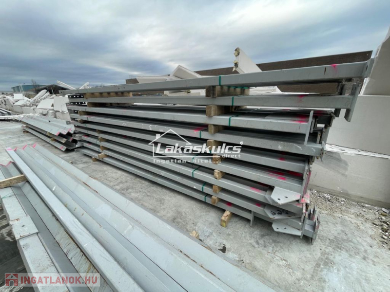 Nyugat-Európából származó, bontott 2.905 m2-es csarnok acélszerkezete eladó, amelyből több darab kisebb méretű ipari csarnok is építhető. Mértek: 41,5x70 m, azaz 2.905 m2, magassága: 13,7 m. A tetőgerendák anyaga IPE-360, hosszúk 14,16 m
