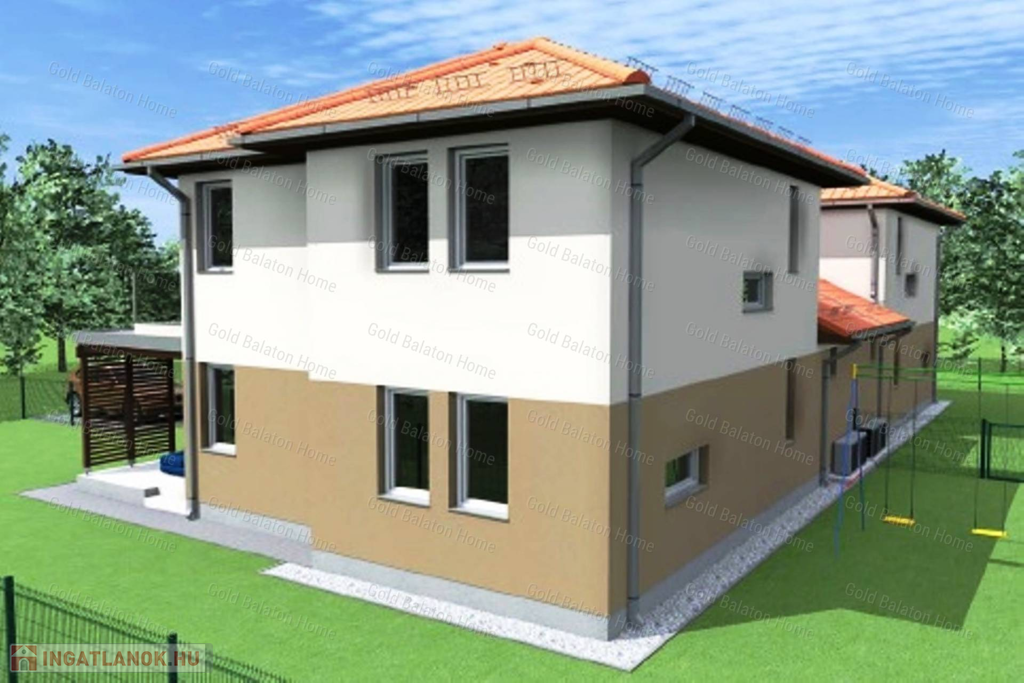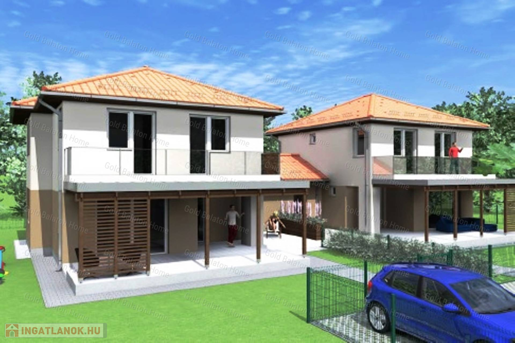 Kétszintes nívós IKERHÁZAK rendezett udvarral, a Hévízi-tótól 3 500 méterre, a Balatontól 4 500 méterre.