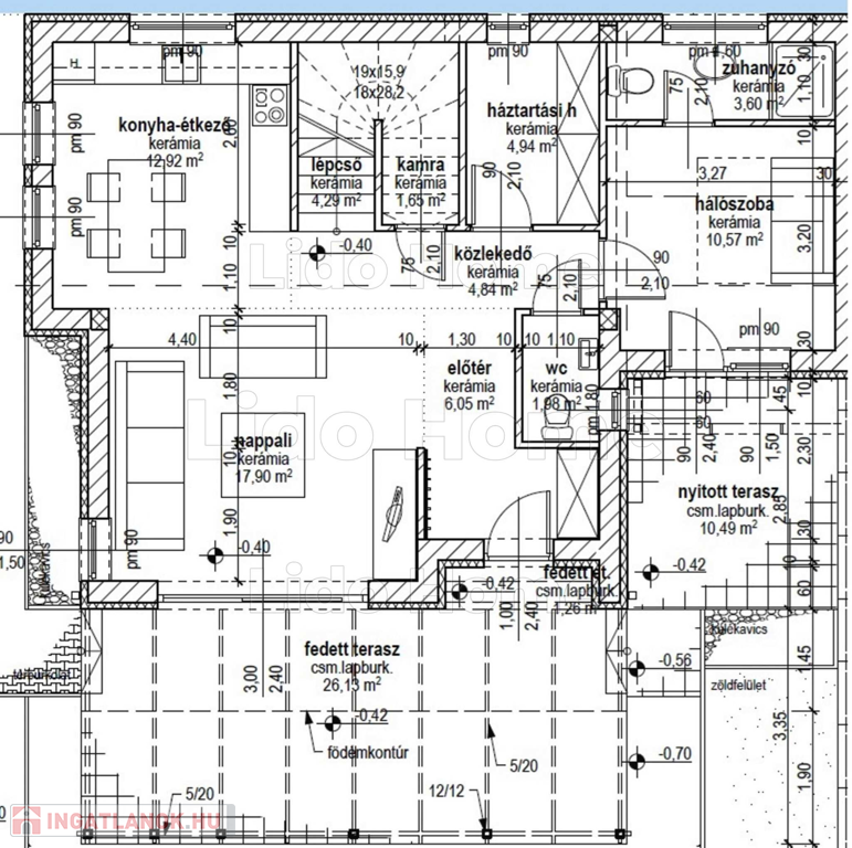 - a kulcsrakész állapot: külső, belső nyílászárók, burkolatok, szaniterek, - konyha nélkül - , udvar rendezve, gyepesítve.