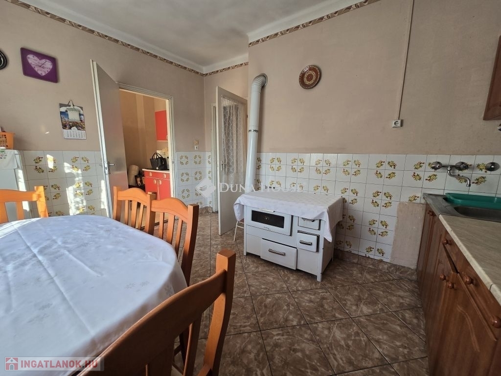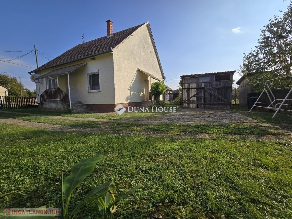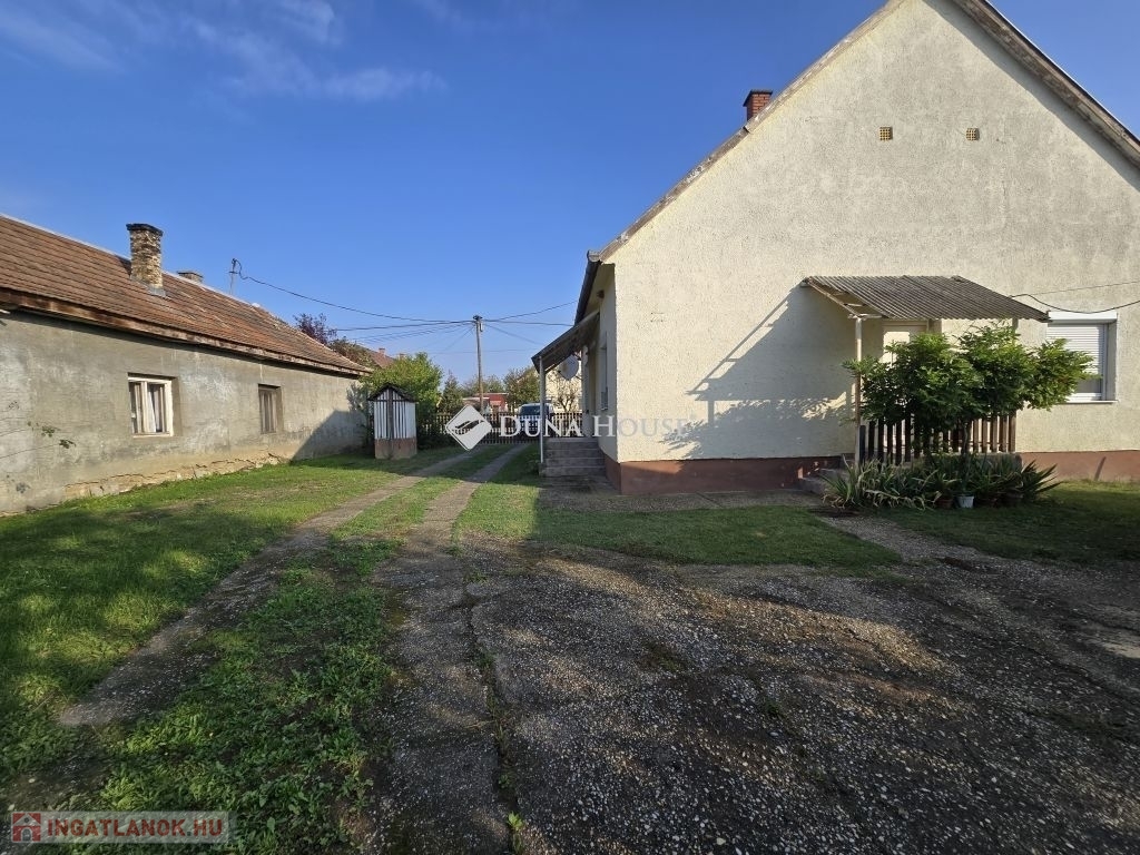 Eladó családi ház Kétújfaluban, a közkedvelt Rákóczi utcában!Szigetvártól mindössze 10 km-re, Pécstől kb. 40 perc autóútra kínálunk megvételre egy jó állapotú, tehermentes, gyorsan költözhető családi házat.A 70-es évek végén épült, téglafalazatú ingatlan 75 m²-es, elosztása: 3 szoba, tágas konyha-étkező, fürdő+WC, előtér, közlekedő,valamint egy üvegezett, de nem fűtött melléktér. A nyílászárók műanyagra lettek cserélve,szúnyoghálóval, redőnnyel ellátva a fűtés cserépkályhával megoldott.A telek 2 158 m², sík, körbekerített, benapozott és egy ásott kút is a rendelkezésünkre áll. A házhoz garázs és melléképületek, ólak is tartoznak. Külső felújítás (pl. szigetelés) vagy a tetőtér beépítés igény szerint elvégezhető.Kétújfalu egy rendezett, jól élhető település: iskola, óvoda, bolt és gyógyszertár helyben megtalálható, a környéken több munkahelyi lehetőséggel.Állapota miatt akár azonnal költözhető, igény szerint bútorozottan kiváló választás családoknak vagy vidéki nyugalomra vágyóknak.További kérdéseivel és személyes megtekintésért várom hívását!