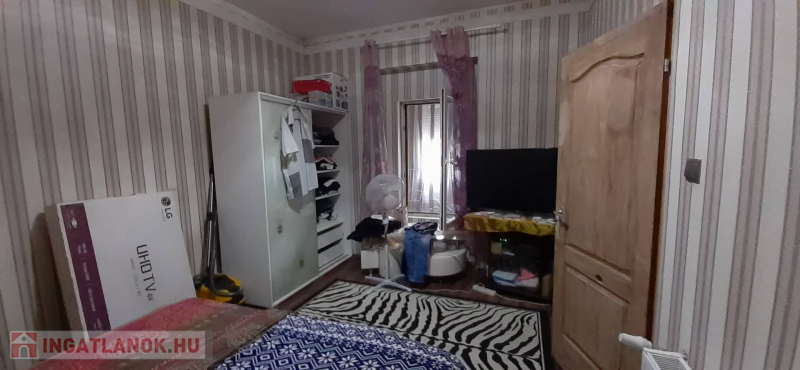 A hátsó lakrész( 49nm) egybe van építve a fő résszel, de teljesen külön bejárattal rendelkezik. Ott találunk egy hosszú folyosót, innen nyílik egy 18 nm-es konyha-nappali, és egy 14 nm-es szoba. A nappaliból jutunk a 4 nm-es fürdőszobába. A folyosóról nyílik az egész épület alatt húzódó pince. Ez a lakrész, bár laknak benne, de a fürdőn kívül még befejezésre vár.