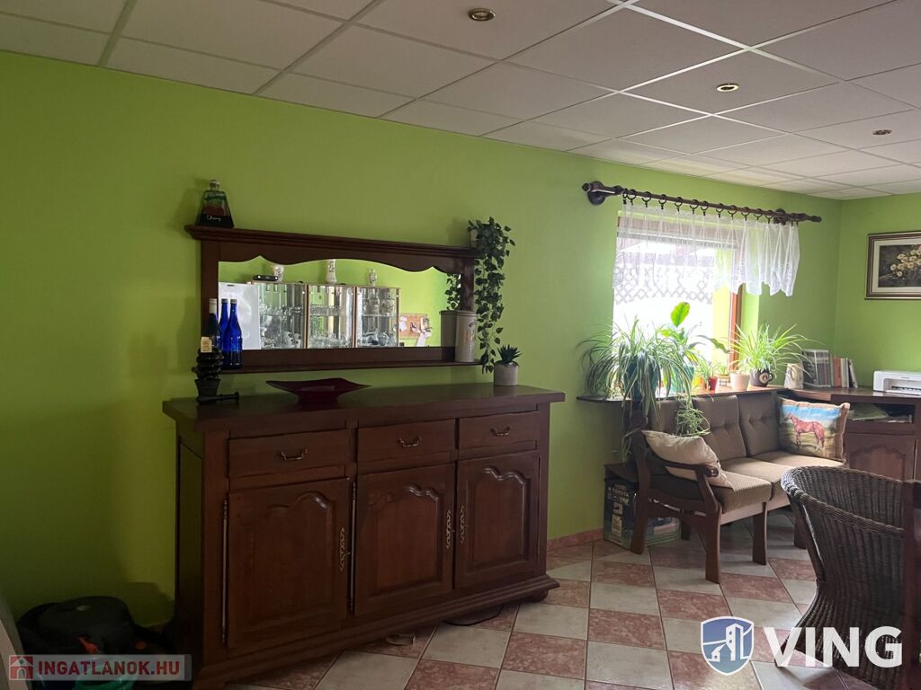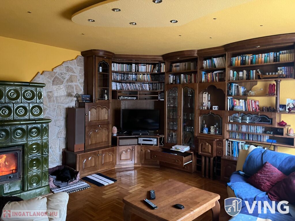 A kertben találhatók gyümölcsfák, van egy szép működő szauna , kerti grillezőhely. Az épület alatt pedig pince van. Összközműves, fűtése: gáz, vegyes tüzelésű kazán és cserépkályha is. Az étkezőbe padlófűtés van. Riasztóval ellátott.