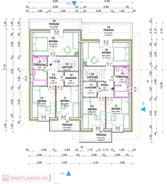 Garázs + több terasz + erkély + 2 teljes értékű lakószint