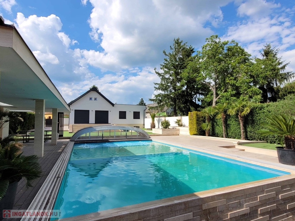 Győrtől mindössze 22 km-re Kóny nyugodt, exkluzív környezetében kínálunk megvételre egy minden igényt kielégítő, újépítésű, luxus családi házat, amely tökéletes választás azok számára, akik a modern eleganciát, a tágas tereket és a privát kikapcsolódás lehetőségét keresik.