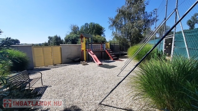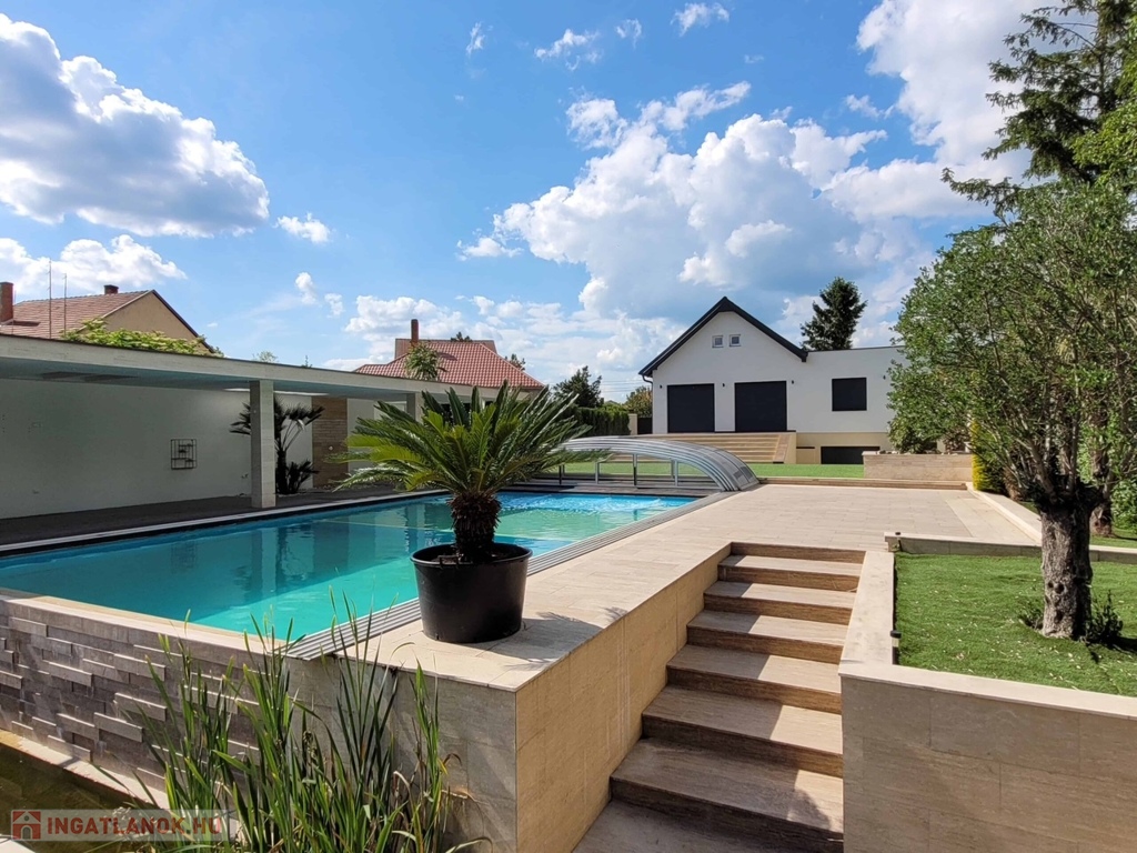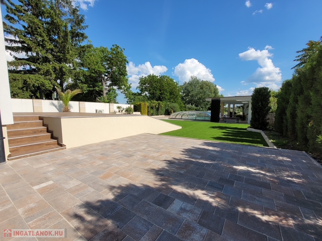 A 1681 m²-es, parkosított telken elhelyezkedő, bruttó 266,8 m² alapterületű ingatlan teljes alápincézéssel készült, miközben a nettó 166 m²-es lakótér minden részletében a kényelmet és a funkcionalitást szolgálja. A parkosított telek teljes intimitás a magas növényzetnek köszönhetően.