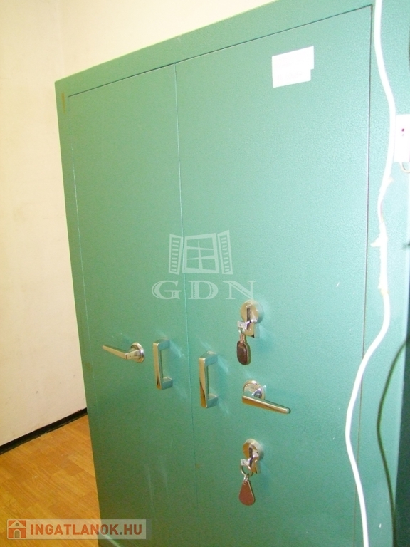 A külön bejáratú emeleti részen irodák, konyha és szociális helyiségek vannak kialakítva. Alapterülete 190 m2, riasztóval és klímával felszerelt.
