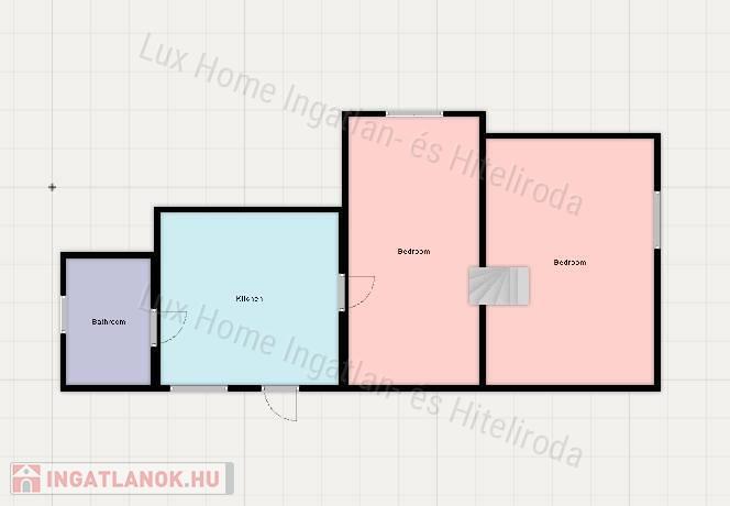 - Az alsó szinten egy konyha, fürdőszoba és egy tágas szoba lett kialakítva, míg a felső szinten egy nagy szoba található