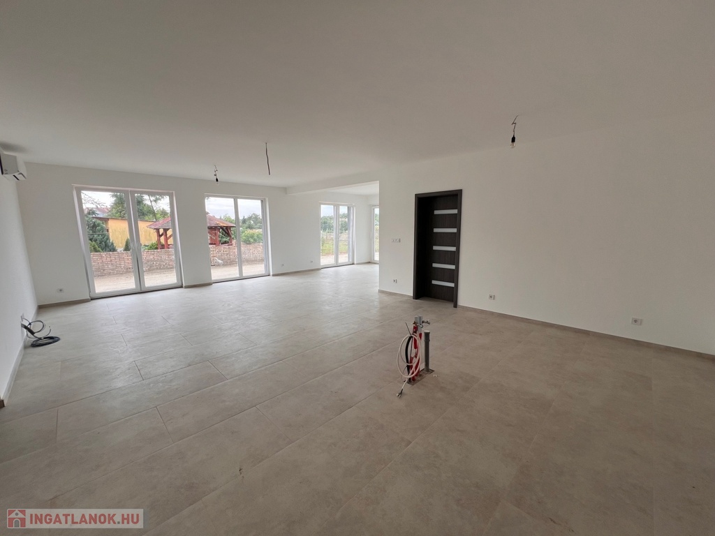 Kótaj csendes, rendezett részén kínálunk eladásra egy új építésű, önálló családi házat, amely egy 1500 m²-es, automata öntözőrendszerrel ellátott, parkosított telken helyezkedik el. A teljes térburkolás és kerítés elkészült, így az ingatlan azonnal költözhető, minden fontos elem készen áll.