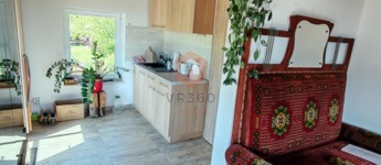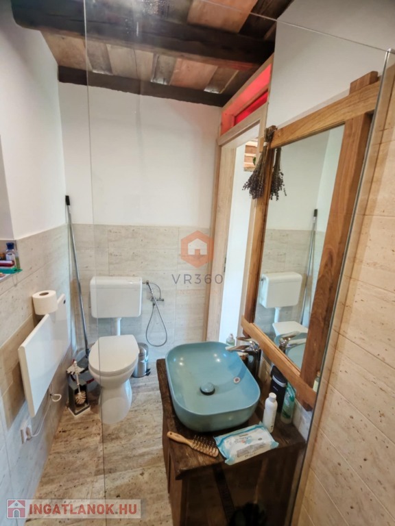 A házban mindkét szinten található konyhai rész, az alsó szint alatt, csodás hangulatú borospince tárul elénk.