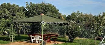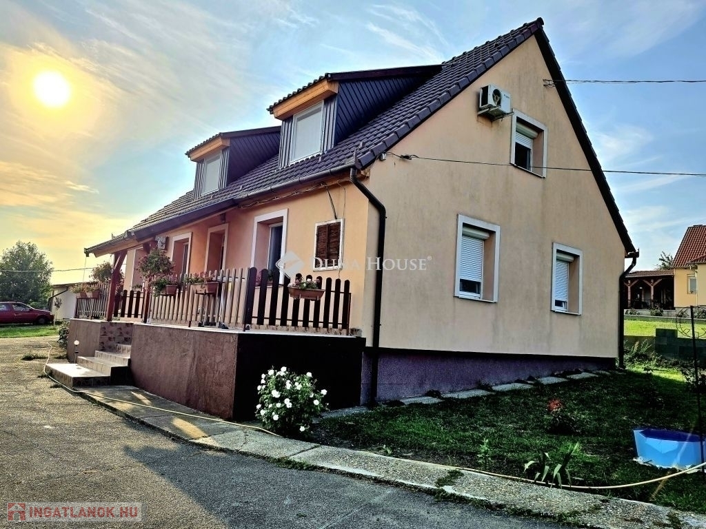 Kővágószőlősön eladó egy nagyon szép állapotú, jelenleg 5 háló+ nappali elosztású, tetőtér beépítéses családi ház nyári konyhával.Az épület 1987-ben épült, kb. 10 évvel ezelőtt külső szigetelést és színezést kapott, a tavalyi év során (2024.) belső felújítás zajlott, nyílászárócserével, aljzatburkolatok cseréjével, az emeleti fürdő újragondolásával.Az ingatlan fűtésére három lehetőség adott: - vegyes tüzelésű kazán- gáz kondenzációs kazán(Saunier Duval)- klímaAz ingatlanhoz tartozó telek 1462 nm, de ezen felül a vételár vonatkozik a házat körülvevő több kisebb telekre, mely összesen közel 1400nm.A területen helyet kapott egy könnyűszerkezetes építésű fűrészüzem, fa megmunkáló gépekkel, melyek szintén maradnak az ingatlan tartozékaként.A nyári konyha a tulajdonosok kedvelt tartózkodási helye a nyári időszakban, mellette egy közel 30 nm-es garázs kapott helyet, ez alatt jó méretű pince van.A telek majdnem teljesen sík, jól kihasználható.A nyári konyha mellett találunk egy 3 helyiségből álló tároló épületet, mely szükség esetén lakótérré alakíthattó.Az ingatlanon kamerarendszer működik, a ház környezete szépen parkosított.További kérdések esetén kérem keressen telefonon!