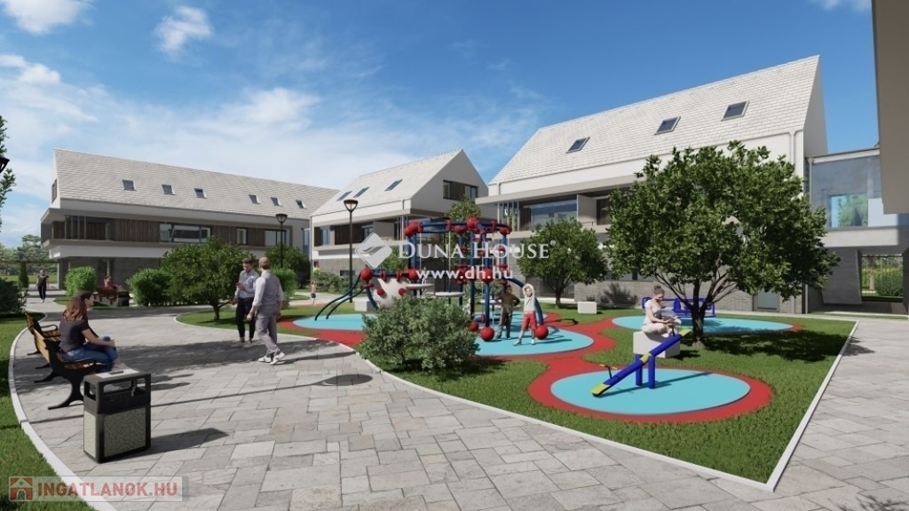 Ez a védett közösségi tér az igények szerint alakítható. Lehet találkozási pont, akár medence és játszótér is megvalósítható erre a területre.A környezet kisgyermekes családok részére is biztonságos, sebességkorlátozott övezet, a közelben új óvoda, kiváló iskola is várja a gyerekeket.