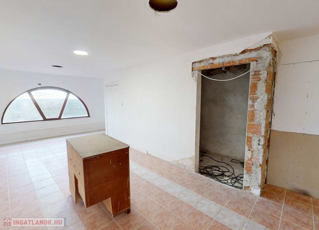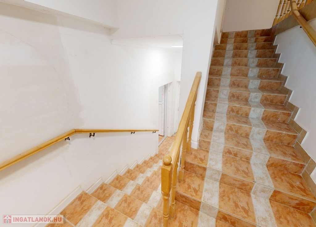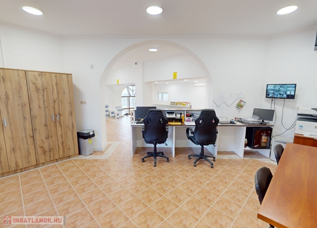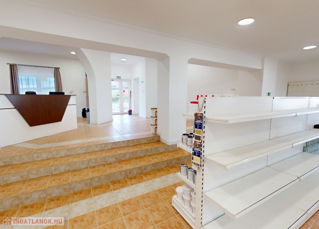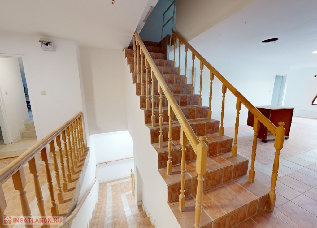A földszinten találhatunk egy hatalmas nagy teret. Gyönyörű szép burkolattal, fallal, spotlámpákkal. Gyönyörű kilátással a környezetre. Képzeljük el, hogy akár egy étteremként, akár egy bemutató teremként – attól függően, hogy mire kívánjuk használni az ingatlant – kiválóan funkcionálhat a mellette levő külön teremmel, recepcióval, és a hozzá tartozó tárolókkal együtt.