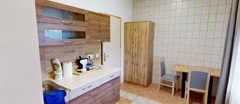 A földszinti három apartman mozgáskorlátozott vendégek számára kialakított lakótér lesz. Ennek a befejezése még várat magára. Természetesen külön bejárattal, autóval a főbejárattól egészen az ajtóig lehet majd gurulni.