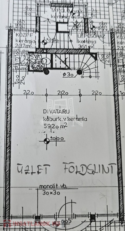 Földszint (59 m²): üzlettér, WC, 2 tároló