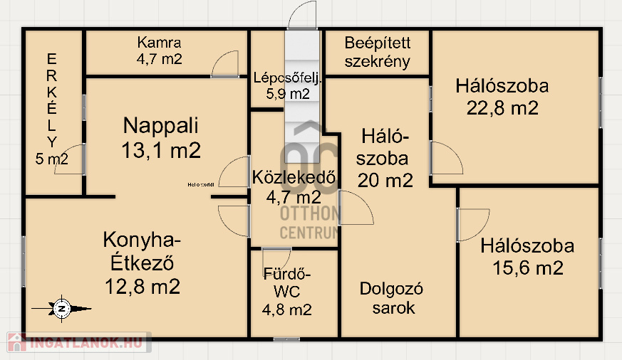 - EMELET helyiségei, amely 100 m2: 3 hálószoba, 1 nappali, amely erkély kapcsolatos, konyha- étkező, kamra, gardrób, fürdő- WC,
