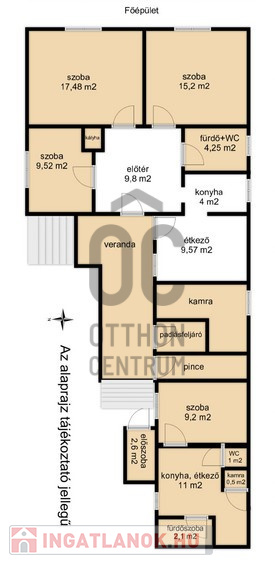 Az főépület jellemzői: