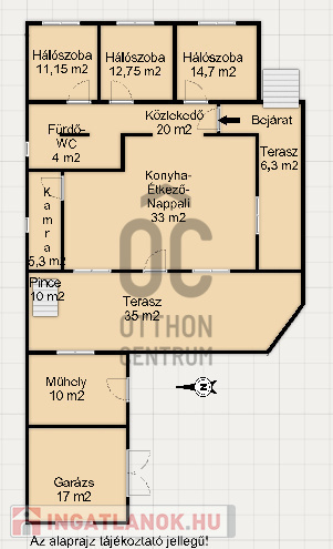 - a földszintes épület helyiségei: 3 tágas hálószoba, egy légtérben amerikai konyha-étkező-nappali, fürdőszoba, külön WC, közlekedő, terasz, kamra kapott helyet