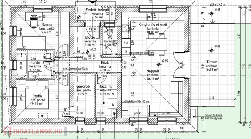 A ház korszerű műszaki tartalommal rendelkezik: