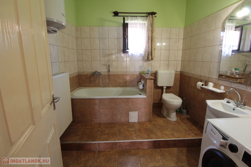 A 680 m²-es telken egy 1970-es években épült kétszintes ház található, melynek hasznos területe 90 m². Vastag, stabil falai tömör, nagyméretű téglából dupla sorba rakva épültek, tégla alapokra. A tetőszerkezete jó állapotú, a lécezés és a héjazat cseréje 15 éve megtörtént.