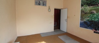A déli fekvésű télikert üvegezett ajtajai és ablakai növelik a benti hőérzetet. Innen egy tágas közlekedőbe léphetünk, ahol DNY irányba két nagyméretű szoba, szemben a fürdő és a stabil emeleti lépcső található. Keletre (jobbra) egy nagyméretű konyha, kamra és a házzal kapcsolatos kazánház helyezkedik el. A nappali egy kis része alápincézett.
