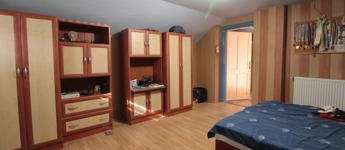 A tetőtérben két félszoba épült, amelyek közül az egyik jelenleg tárolóként funkcionál.